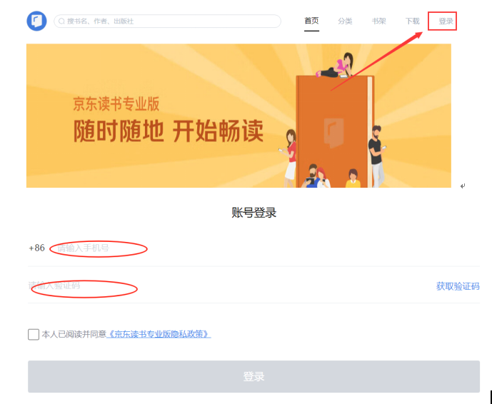 通过手机号登录,不限IP范围,登陆成功后此设备使用京东读书专业版免登陆。