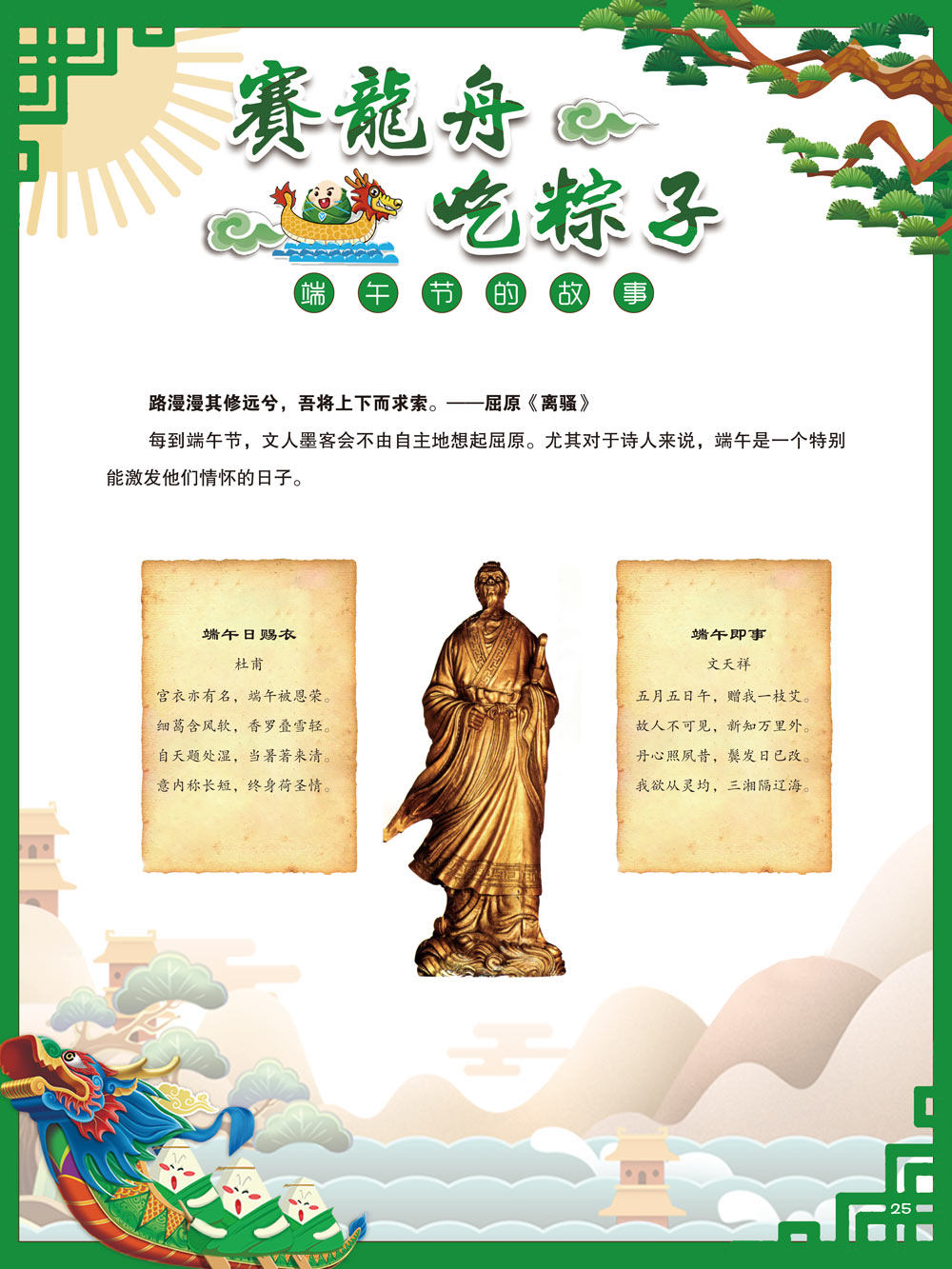 农历五月初五是端午节,本次端午特展共分为“闻香识粽子”“端午风俗多”“故事代代传”“端午美食鉴赏大会”“谁端走了我的端午?”“古诗词里的端午节”六个单元,在积极、明快、向上的氛围中,带领观众体验民风民俗之美与民族精神之美。其中设计的“五彩线香囊迷宫”“龙舟找影子”等诸多互动环节仿佛一道文化盛宴,能够高效滋养“端午记忆”,以唤醒人们扎根于心底的端午印记,让华夏民族的文化血脉永续流传。 过好端午节,传承好节日文化,这正是“端午文化”里的主流表达。愿所有人带着对端午的敬畏与热爱,共同传承好端午节里的优秀传统,推动传统文化薪火相传、创新发展,为坚定文化自信,推动社会主义文化繁荣兴盛,建设社会主义文化强国,贡献自己的智慧与力量。