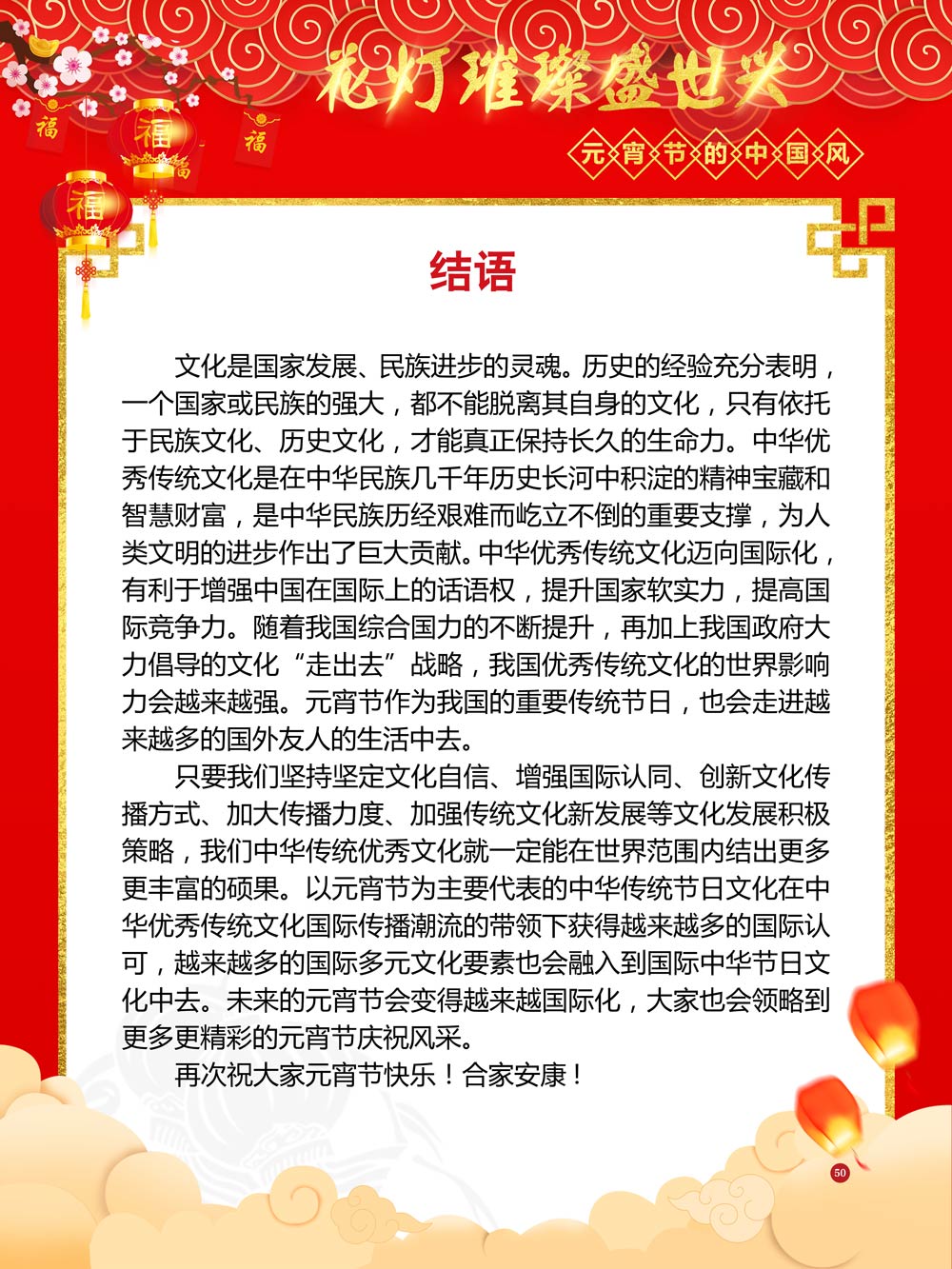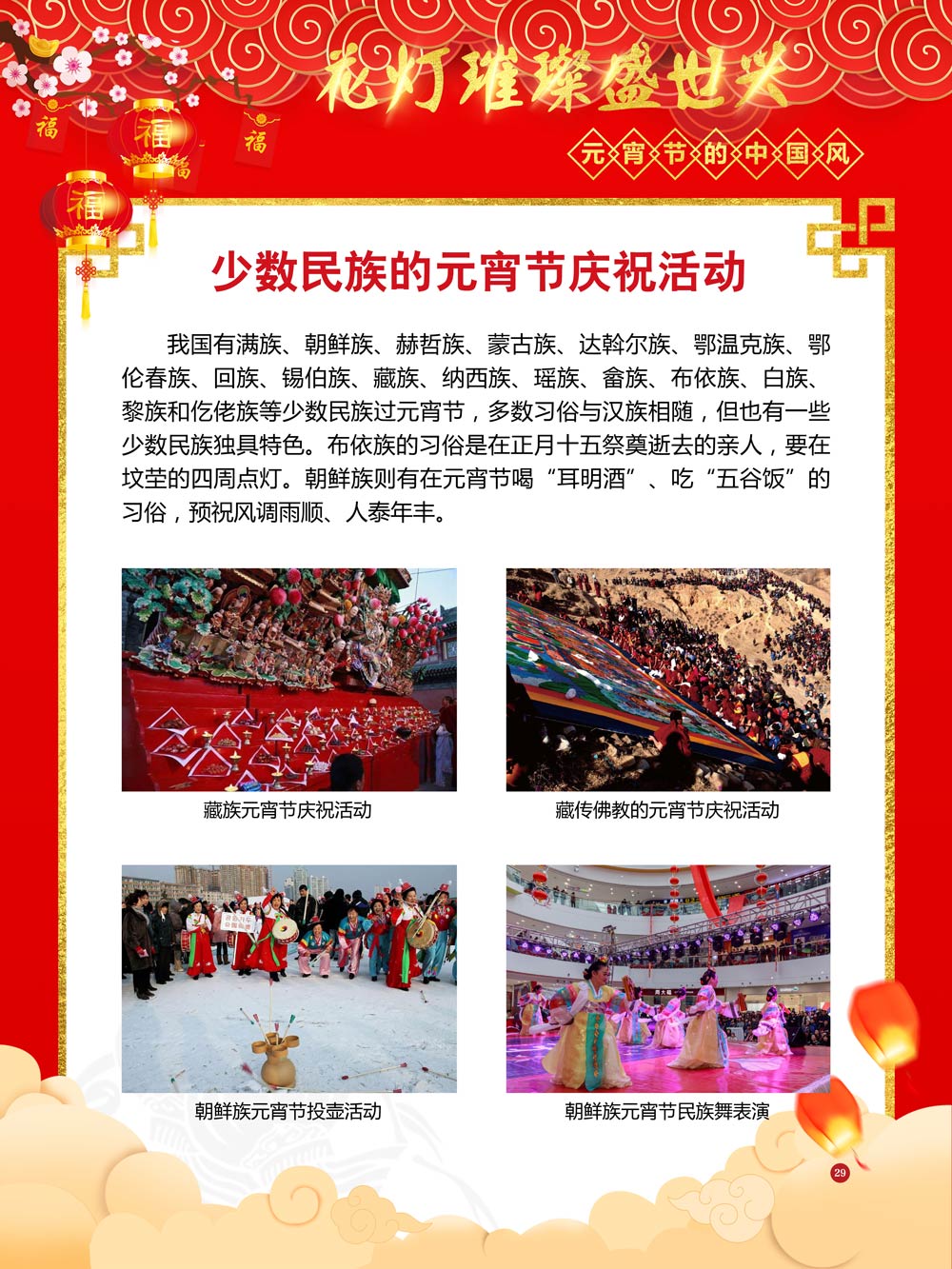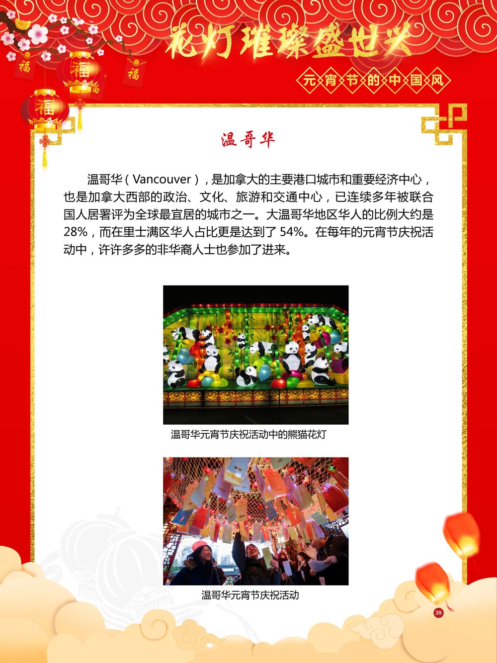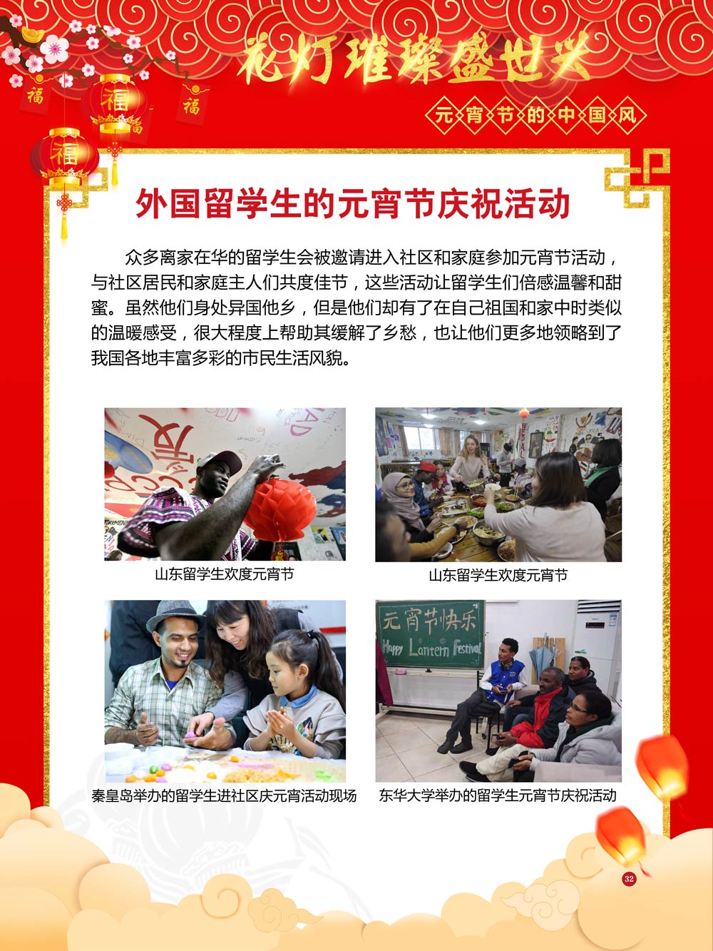 过完春节过十五,正月十五闹元宵!一年一度的元宵节又要喜气洋洋的登场了!值此佳节来临之际,我们首先给大家拜一个晚年,同时祝愿大家元宵节快乐!元宵节的历史源远流长,形成了其富有特色的节日风情,是中华民族的重要传统节日之一。 随着全球化时代到来后,全世界的各大文明形态和多种多样的文化迎来了有史以来最大的深度融合。中华传统文化也乘着文化全球化的快车,通过遍布世界各地的华侨华人传播到了世界上的每一个角落。元宵节也在此背景下,由一个中华传统节日逐渐的发展为一个具有浓重现代多元气息的世界节日。元宵节的庆祝活动也不在仅仅局限在中华文化圈内,而是逐渐地扩大到了更大的国际范围中。越来越多的世界各地居民领略到了我国元宵节独特的魅力风采,而且也在逐渐地加深理解元宵节蕴含的丰富内涵。各色皮肤和各种语言的人们越来越积极地加入到庆祝元宵节的队伍中来,丰富多彩的国外文化也随之自然融入到传统的中华元宵节文化中去。 今天,庆祝元宵佳节的活动已经在世界各地如雨后春笋般出现,元宵节已经成为了富有鲜明中国风的重要东方文化符号。我们将通过本展为广大观众朋友们呈现这一幅幅张灯结彩且充满欢声笑语的精美画卷。