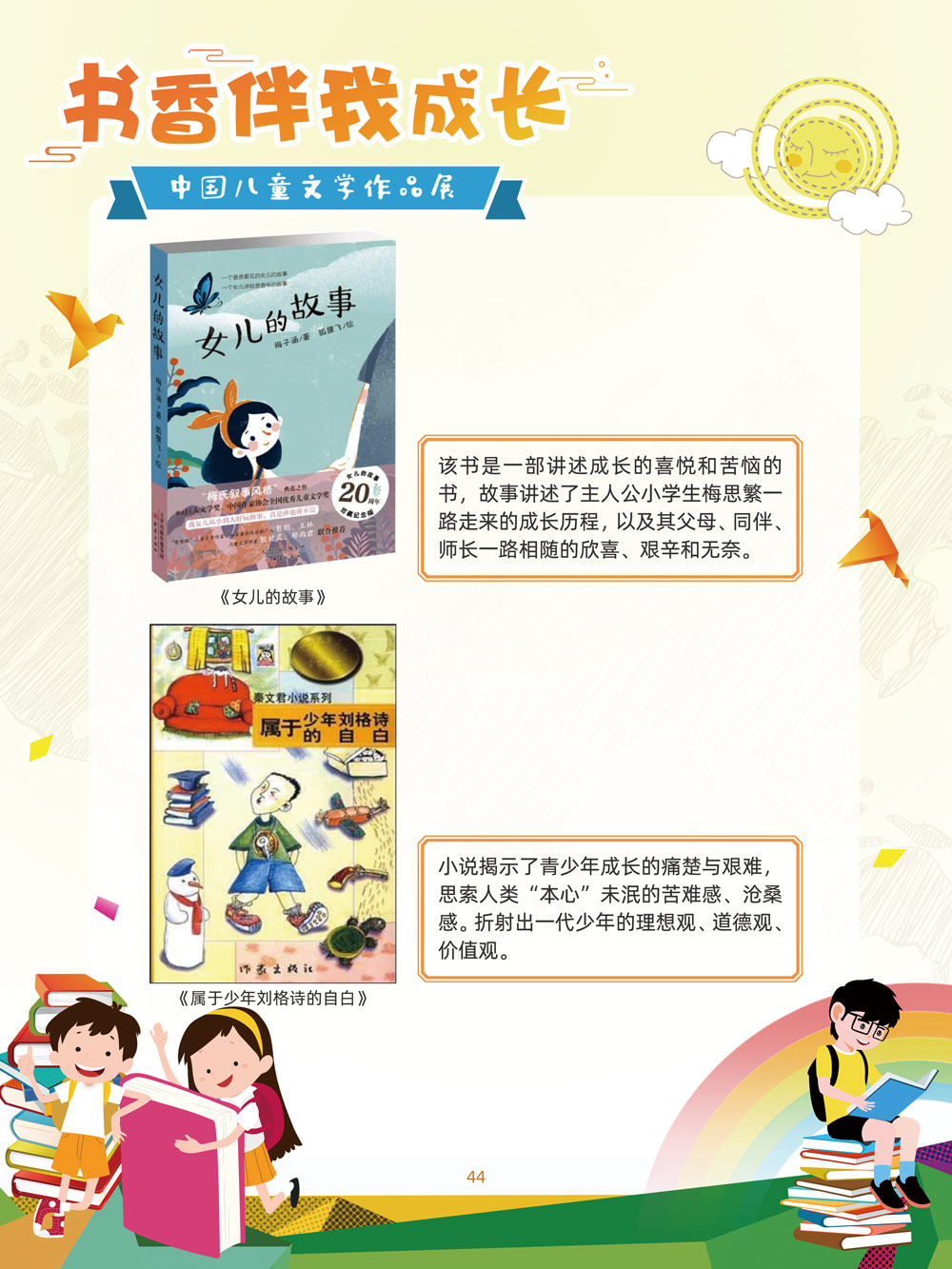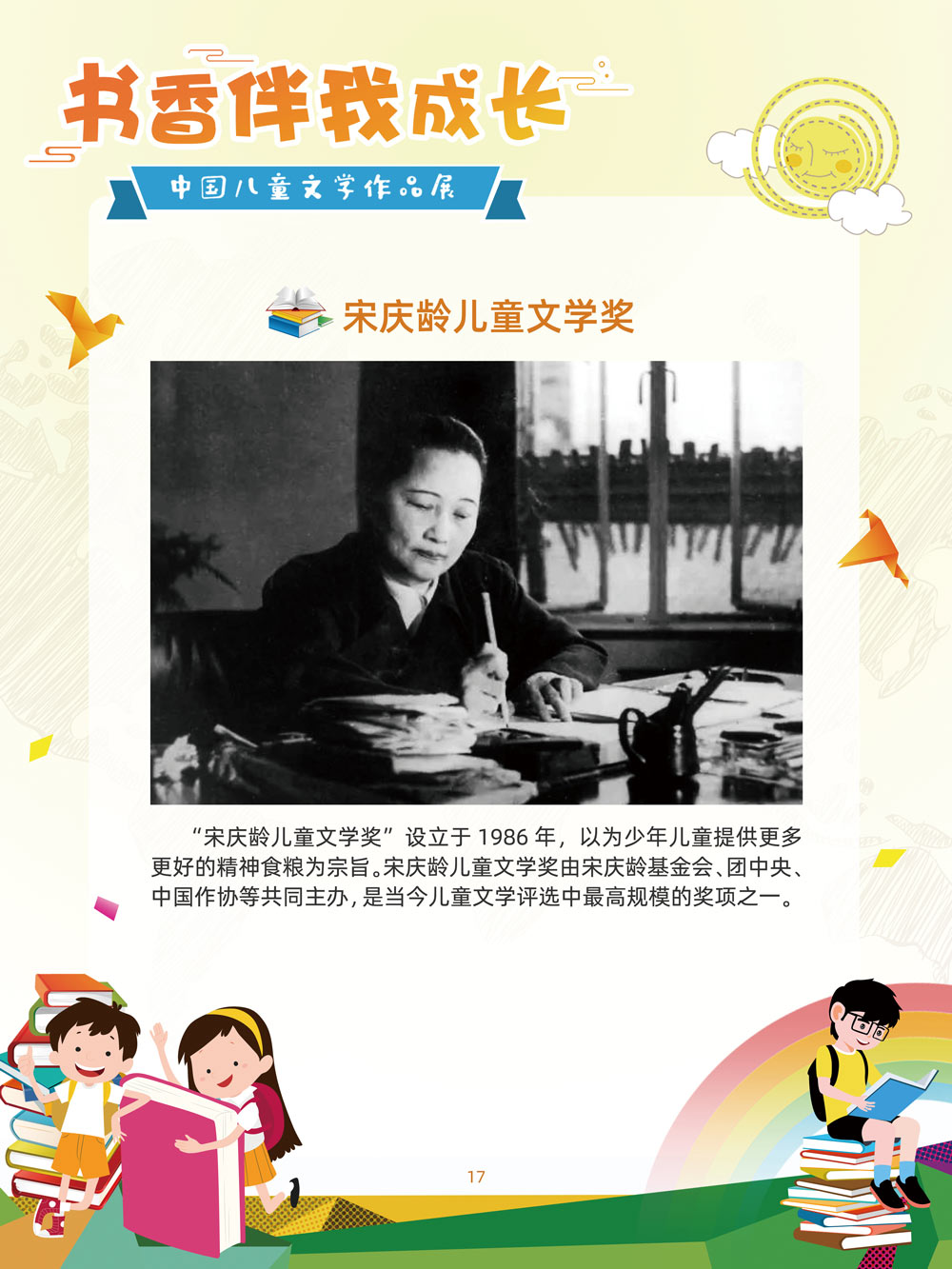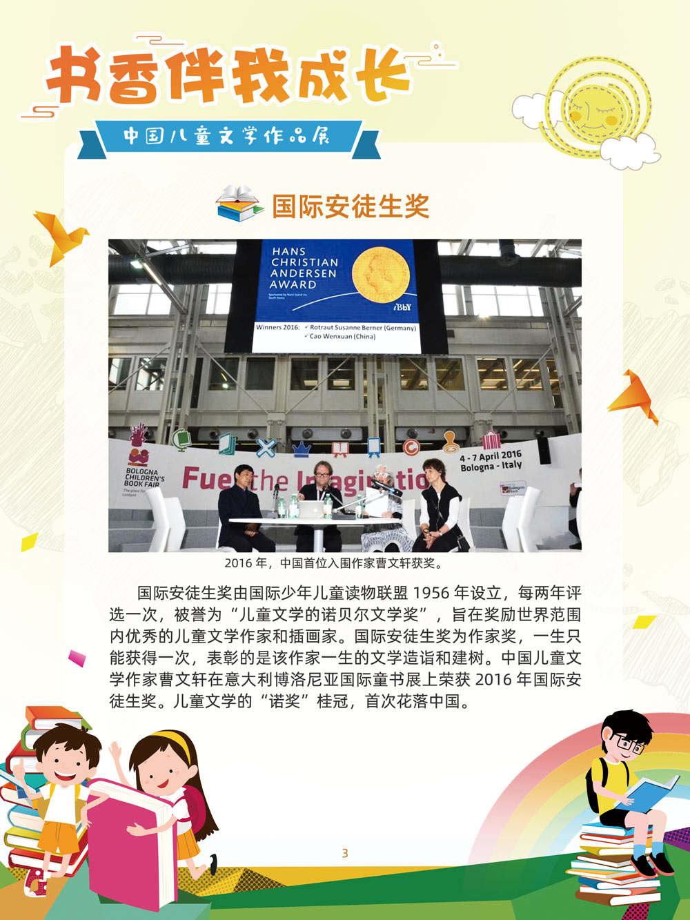 人之初,性本善。儿童文学是人生最早接受的文学。那些曾经深深感动过少年儿童的作品,将使人终身难忘,终生受惠。在今天这个传媒多元的时代,我们特别需要向广大少年儿童提倡文学阅读。 对孩子来说,一本好书,在带给他们欢笑与感动的同时,也可以帮助他们搭建起一个丰富多彩的心灵世界,以文字为窗口,孩子们可以凭窗远眺,放眼望去,皆是瑰丽多姿的世间万物。 以童趣笔调,描孩子的天真生活,以新颖视角,投射孩子的奇妙想象,在这些趣味盎然的书籍里,我们陪伴孩子一起阅读思考,探索认识这个世界的温柔与善良。 在“六一”儿童节到来之际,此次展览将最好的儿童文学作品介绍给广大少年儿童通过介绍荣获国际安徒生奖、国家图书奖、宋庆龄儿童文学奖、冰心儿童文学新作奖、陈伯吹国际儿童文学奖、全国儿童文学奖的部分优秀获奖作品,让孩子们通过阅读,赏和领略不同文学大师的风格,感受各种儿童文学大奖作品的魅力,寻找记忆深处的纯真,也让这些儿童文化作品点亮孩子们的梦想。