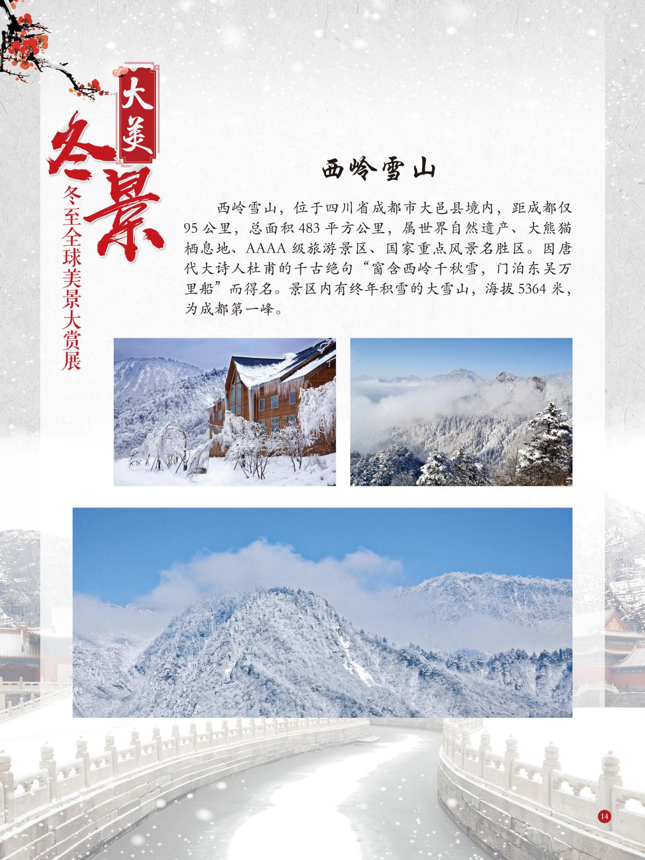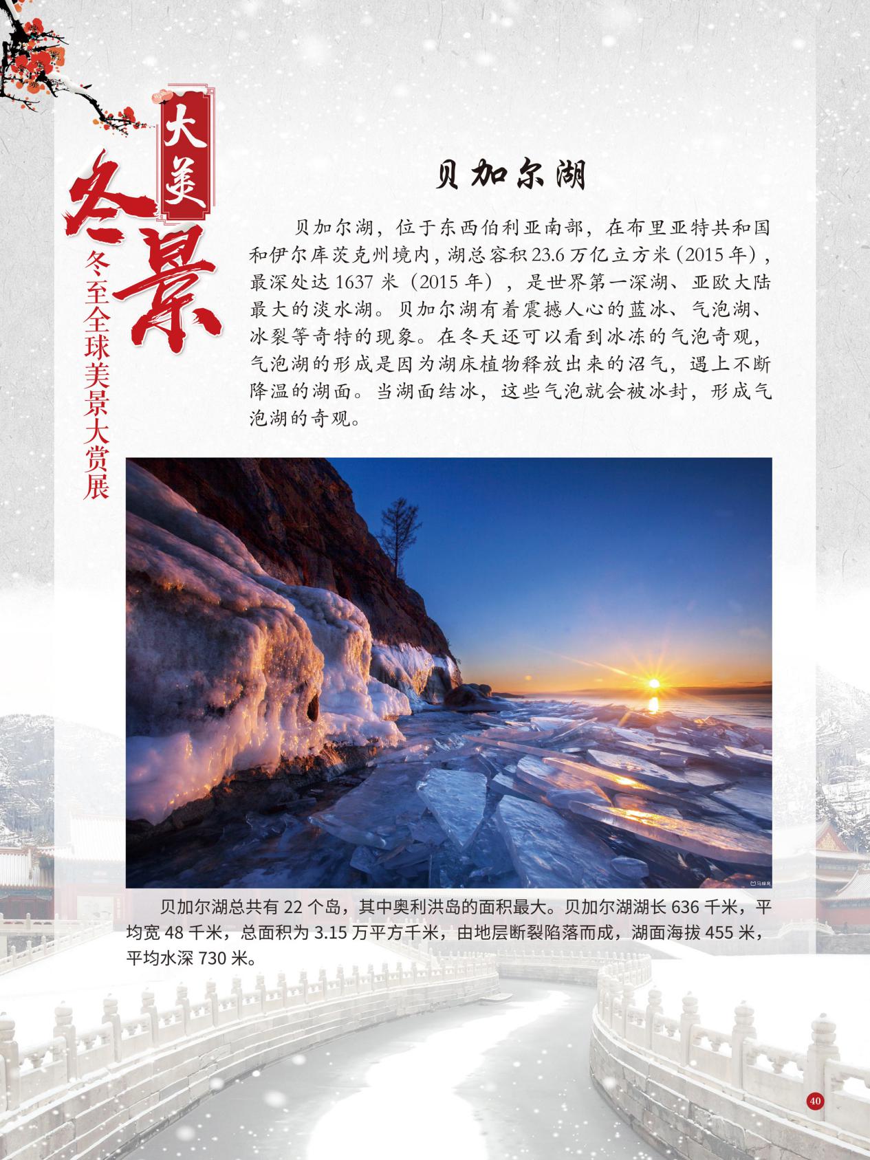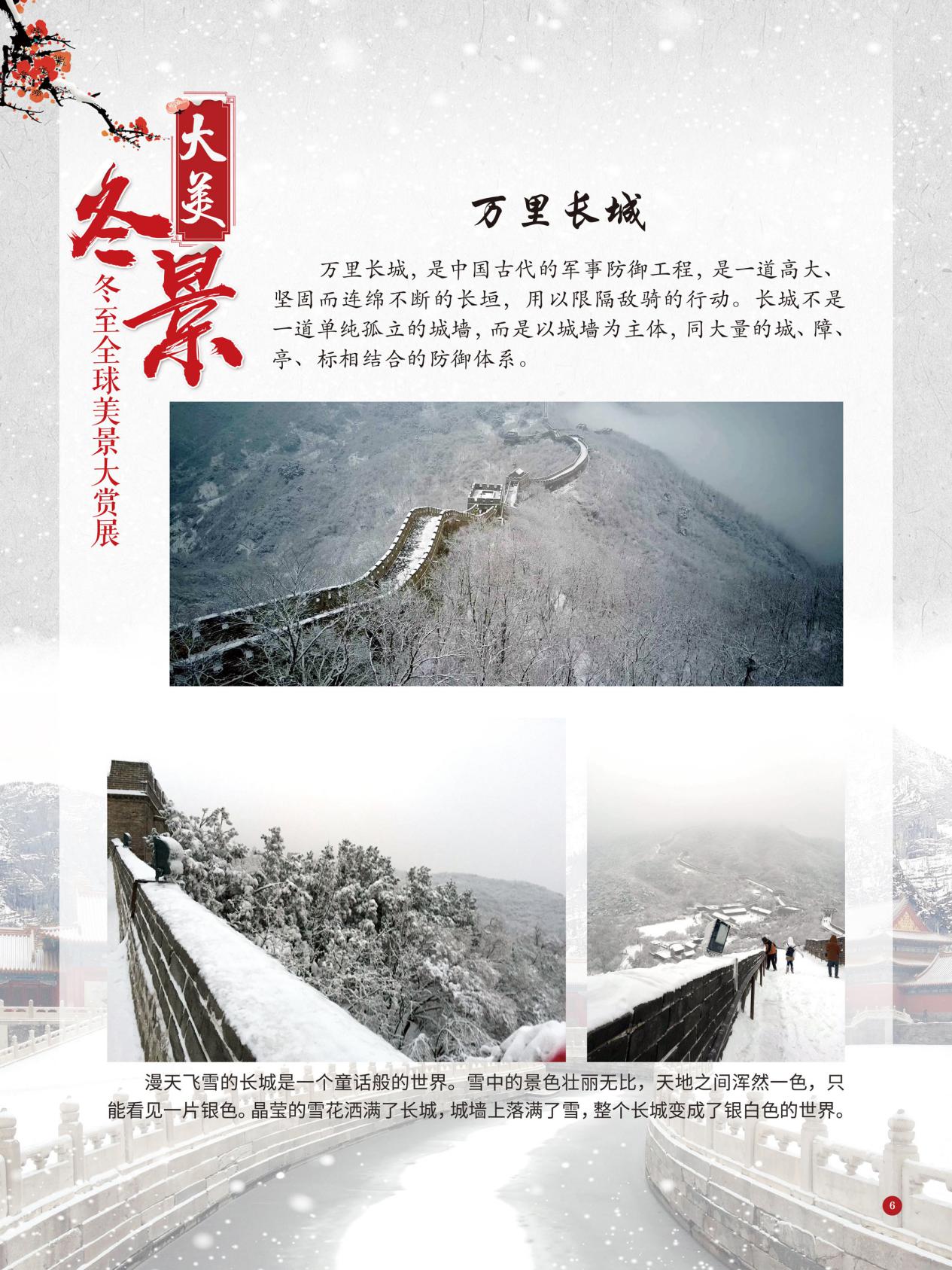 冬至是中国民间的传统节日,于每年公历12月21日至23日交节。冬至是四时八节之一,被视为冬季的大节日,在古代民间有“冬至大如年”的讲法,所以古人称冬至为“亚岁”或“小年”。冬至兼具自然与人文两大内涵,是二十四节气中一个重要的节气。 冰雪,是冬天谱写的一曲曲华丽乐章,是毛主席笔下的“北国风光,千里冰封,万里雪飘” ,是杜甫笔下的“窗含西岭千秋雪,门泊东吴万里船”, 是岑参笔下的“忽如一夜春风来,千树万树梨花开”,是柳宗元笔下的“孤舟蓑笠翁,独钓寒江雪”……地域不一样,冬天谱写的冰雪乐章也不一样,即便是同一处冰雪胜景,不同的人品出的也是不一样的味。冬天的美景是大自然的馈赠,本展览主要介绍冬至来临之后全球的冰雪美景奇观,带大家一起领略冬季的风采,探寻大自然的奥秘!