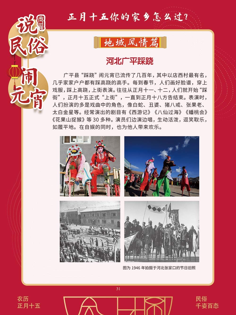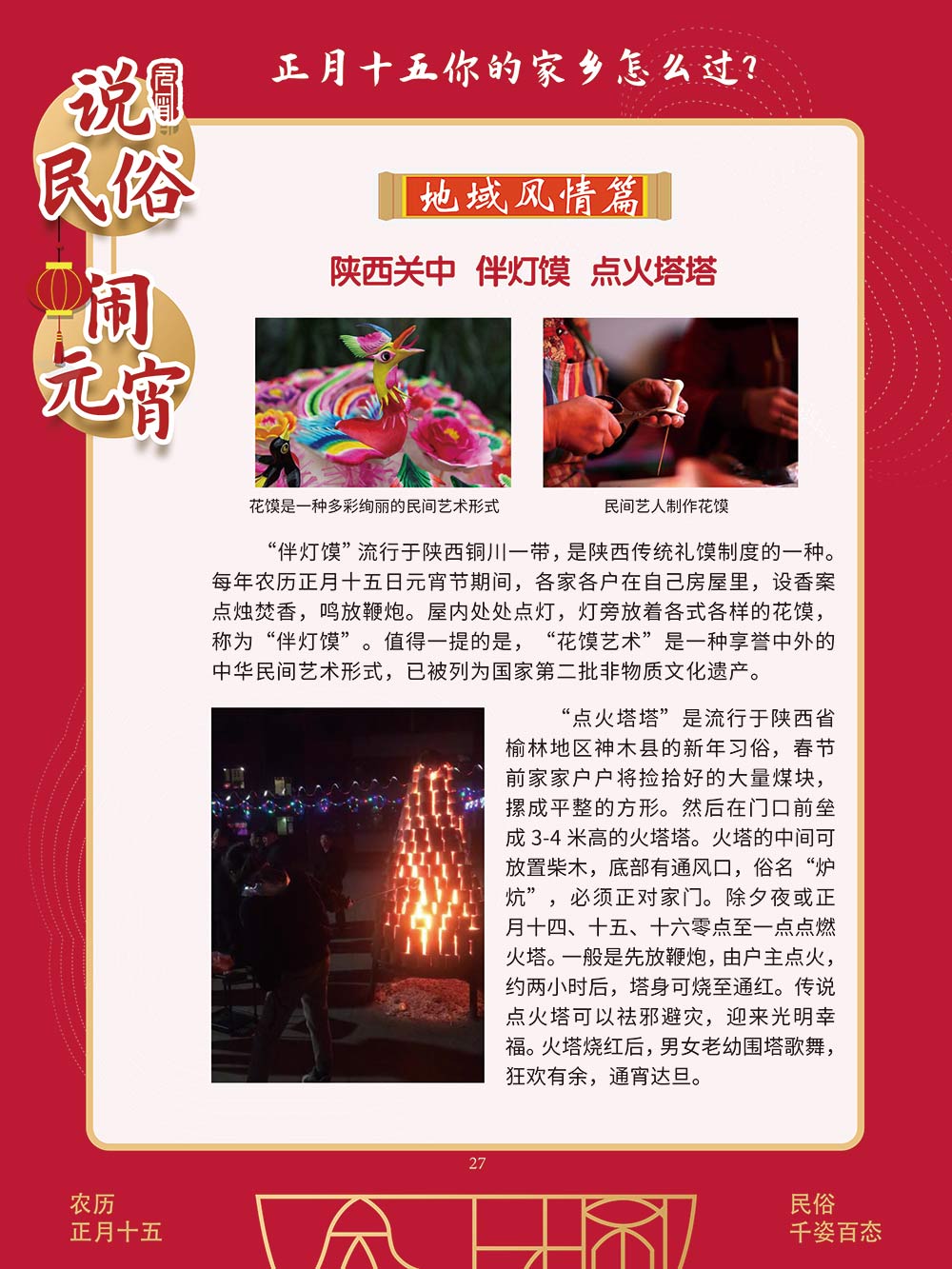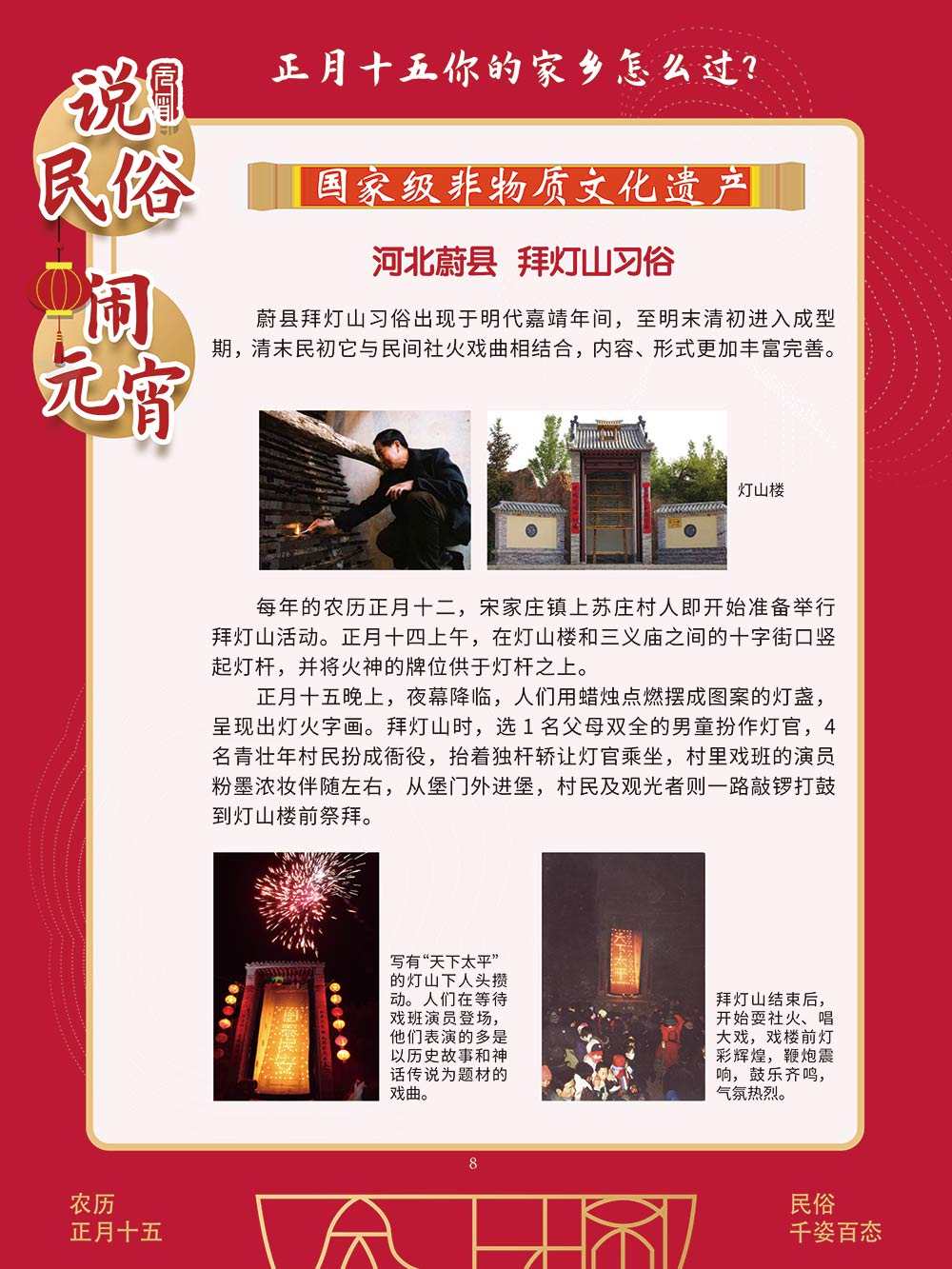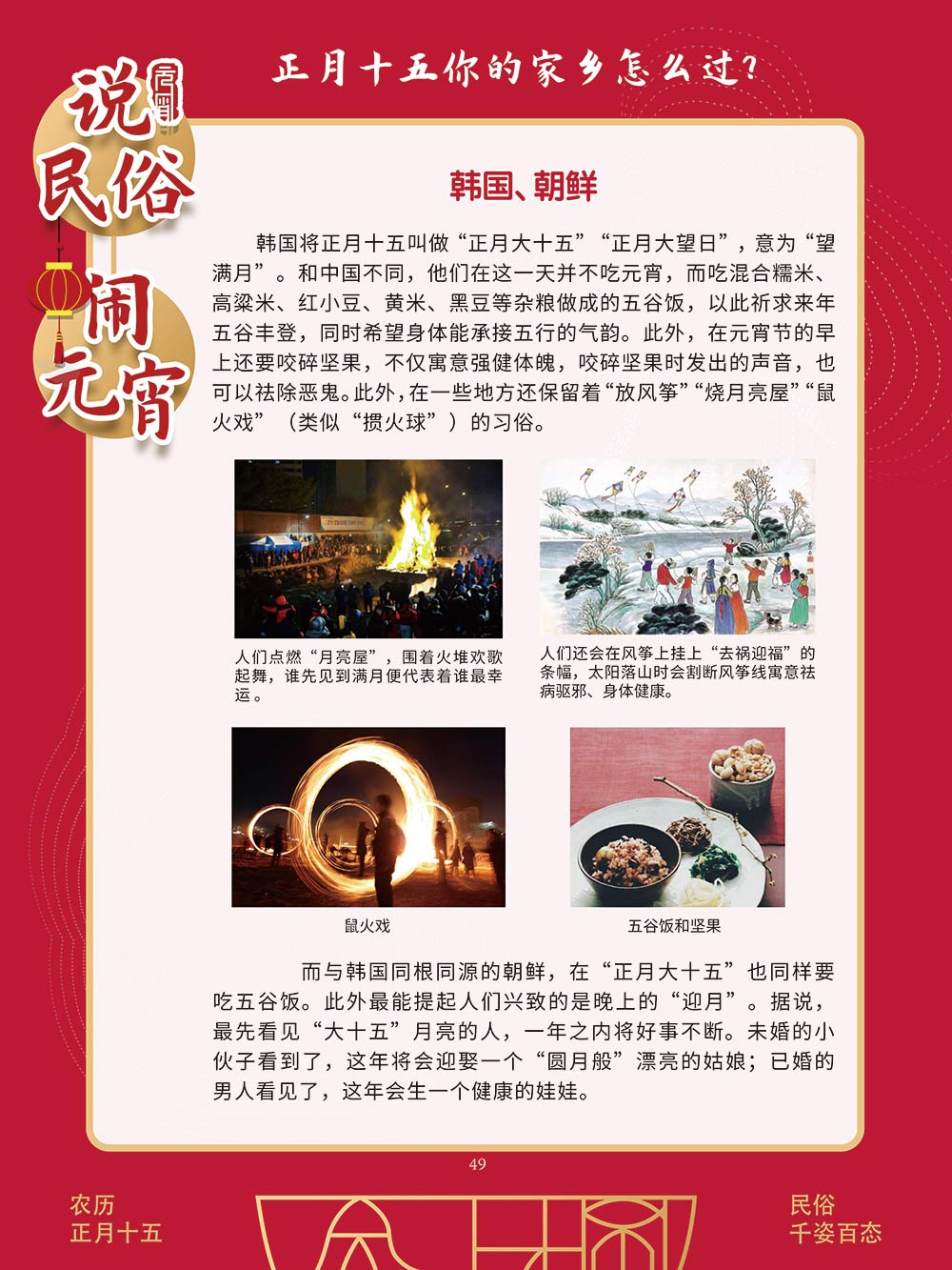 每年的正月十五这一天,赏花灯、猜灯谜、吃元宵、放烟花、耍龙灯、舞狮子、踩高跷、划旱船……这些衍生于汉民族传统习俗的节日活动接连上演,随处可见一派欢天喜地、热闹非凡。然而在幅员辽阔、地广物博的中华大地上,不同的民族和地域也形成了许多独具特色的元宵节习俗,其中很多都已被列为国家级非物质文化遗产。 这些从农耕文明孕育而来的岁时节俗,千百年来,孕育和滋养了博大而丰富的中国传统文化。它们经历了千百年漫长而复杂的发展变迁、代代相传,凝聚了中国劳动人民的智慧结晶,闪烁着中华民族的文明之光。 在西方节日流行的当下,我们对这些中华民族的灿烂民俗文化瑰宝又了解多少呢?是时候让灿烂的民俗真正“闹”起来,让传统节日融入当下的大众生活,在保留原有文化底蕴的基础上,从内容和形式上注入更符合现代潮流的创新元素,唤回年轻人们的关注。 正月十五你的家乡怎么过?不妨借此元宵佳节之际,让我们一起来说民族闹元宵,比一比究竟哪里的年味最浓!