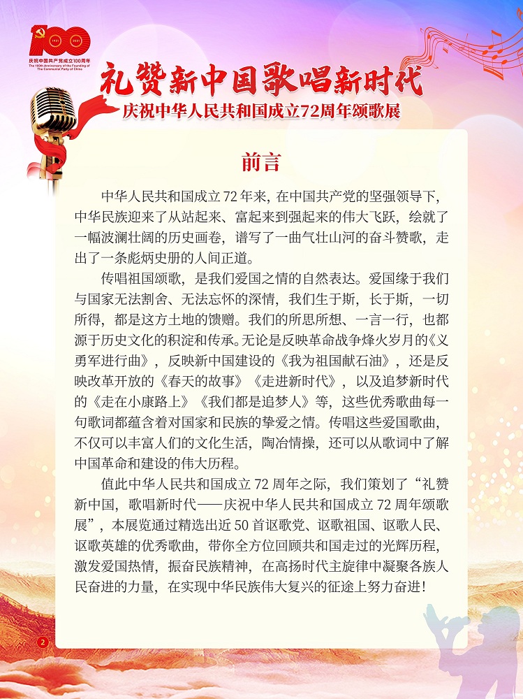 线上展览丨礼赞新中国,歌唱新时代——庆祝中华人民共和国成立72周年颂歌展
