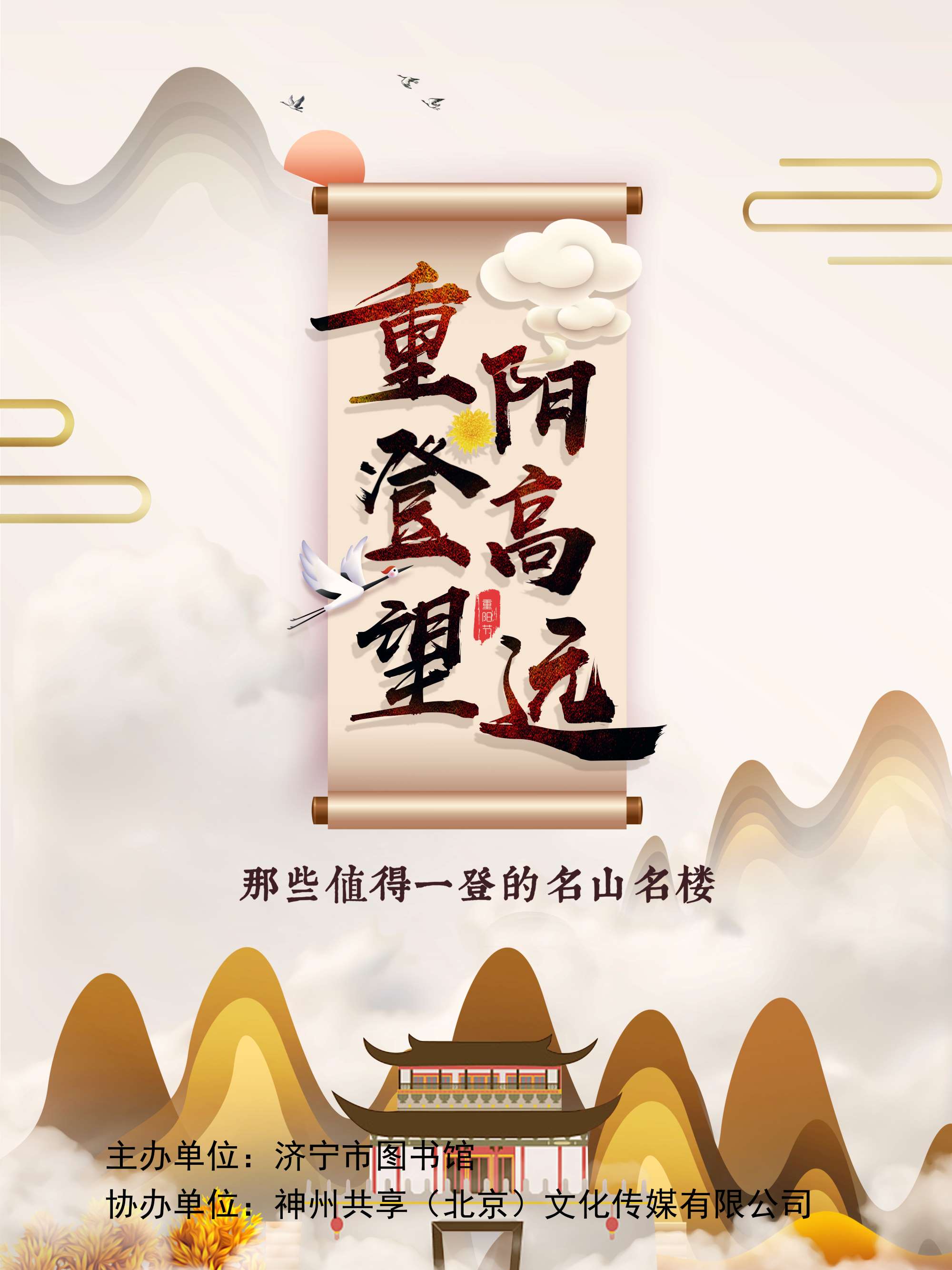 登高野宴是古人重阳节的一项重要活动,故重阳节又叫“登高节”。汉末曹丕在《九月与钟繇书》中说:“岁往月来,忽复九月九日。九为阳数,而日月并应,俗嘉其名,以为宜与长久,故以享宴高会。”唐代孙思邈在《千金月令》中说:“重阳之日,必以肴酒登高眺远,为时宴之游赏,以畅秋志。酒必采茱萸、甘菊以泛之,既醉而还。”足见登高在众多重阳习俗中有着十分重要的地位。 重阳登高的习俗源于此时的气候特点及古人对山岳的崇拜,登高“辞青”与古人在阳春三月春游“踏青”相对应。春秋战国时期,“登山祈福”的习俗已开始流行。登高的地点,没有统一规定,登高所到之处大抵分为登高山、登高楼,抑或是登高台。 从先秦宋玉在《楚辞·九辩》中“登山临水”的抒怀,到唐代王维在《九月九日忆山东兄弟》中“遥知兄弟登高处,遍插茱萸少一人”的感慨,及至民国时期文人墨客的登高雅集,在被登临的名山、名楼、名台的背后,流传着许多名家诗句和值得回味、纪念的人与事。值此重阳登高日,让我们通过本次展览,巡礼古往今来藏在这些名山名楼背后的那些重阳故事。
